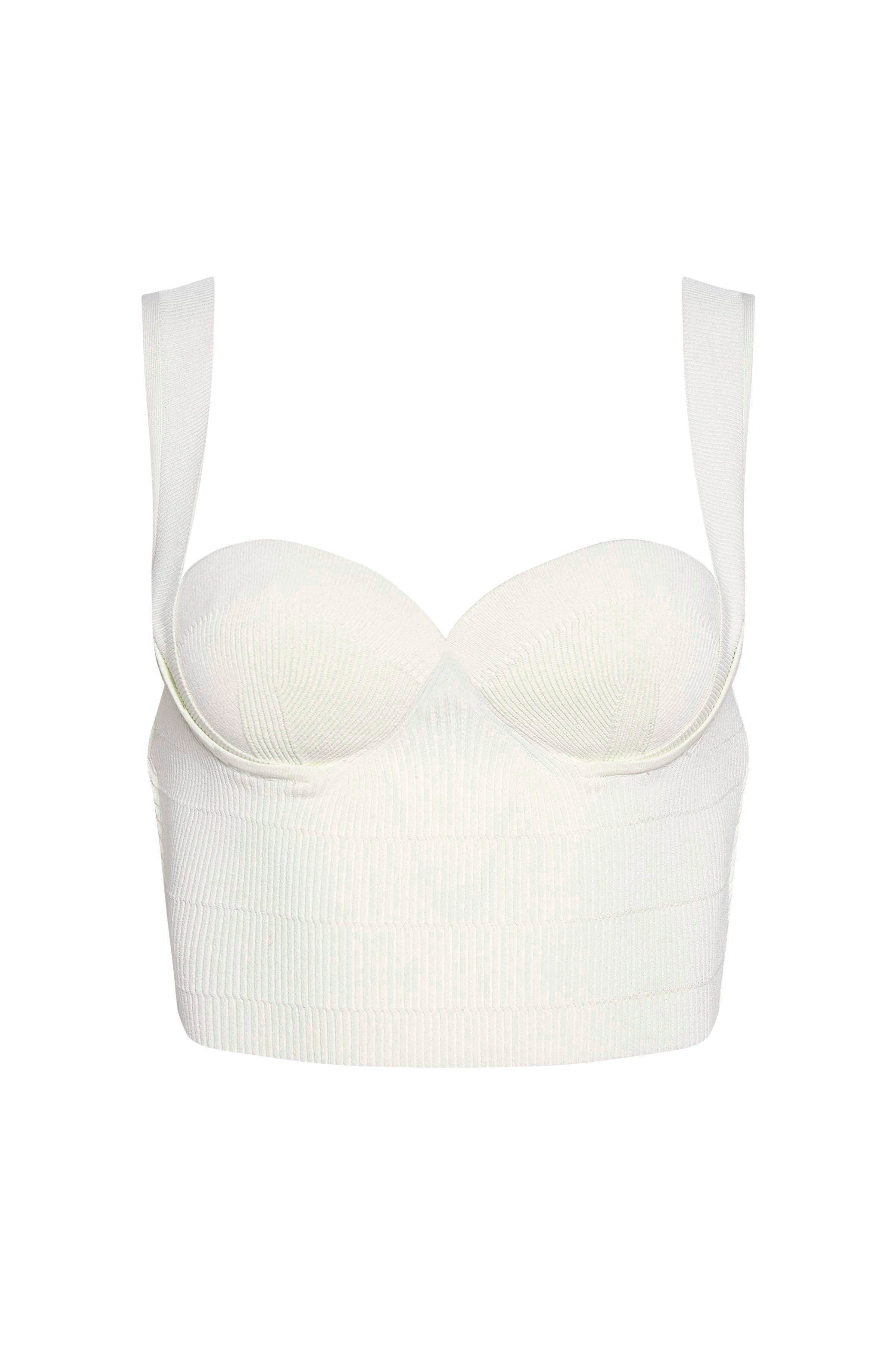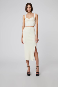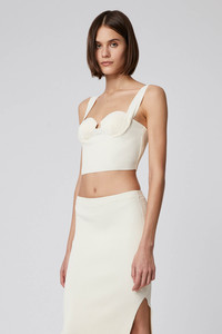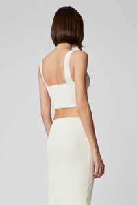 The ‘Nyneve’ top is constructed from compact, micro-ribbed yarn to a fitted and flattering silhouette. The integral bra top and thick shoulder straps complement the simple, fitted torso. The ultra-compact knitted stretch fabric results in an all-around flattering shape. Pair it with the coordinating ‘Irvette’ skirt for a monochromatic statement. Details - Bustier silhouette - Integral cups at bust for shape and support - Wide strap - Compact stretch ribbed knit - 75% Rayon Viscose, 25% Elite Polyester