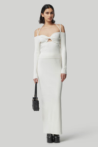 The ‘Odin’ sweater is rib-knit to a close-fitting silhouette with a bralette style top and a cut-out detail celebrating the female form. The bandeau style is highlighted by a braided halter neck strap, shoulder staps and then finished with long, slim sleeves. Details - Slim long sleeves - Off shoulder - Cut-out detail at front - 100% GRS Viscose - Model is 5'10" and is wearing a size S