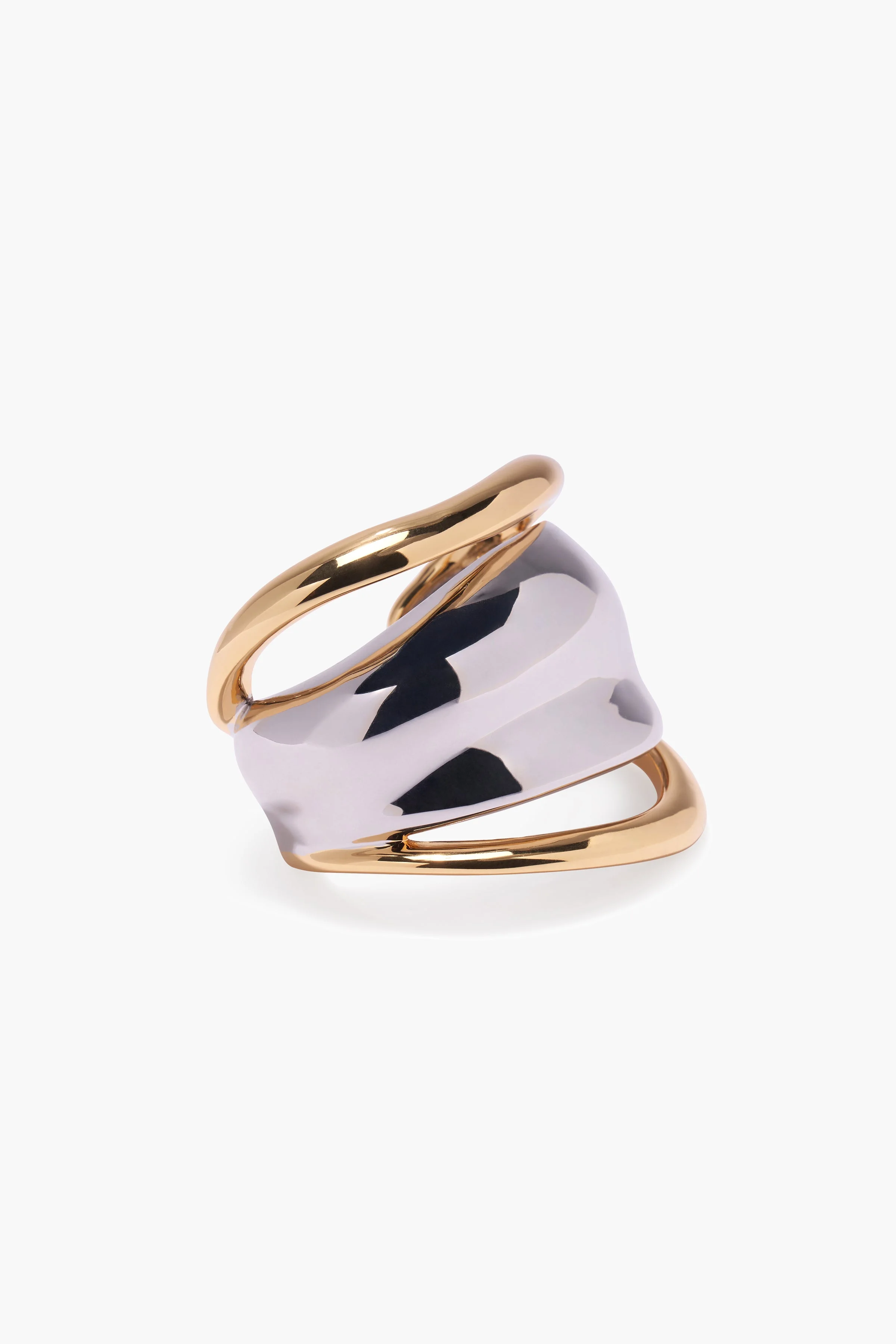 The Olio Cuff embodies Altuzarra’s modern take on statement jewelry. It’s crafted from gold and silver-tone brass with fluid, interlacing curves that wraps elegantly around the wrist. Details 100% Brass Plated in Palladium and Gold