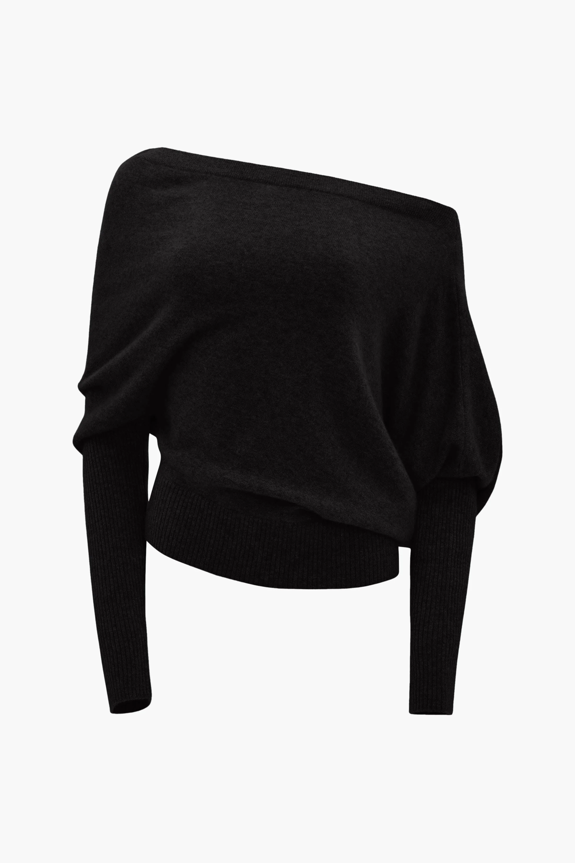 The Paxi sweater is spun from pure cashmere to a sensual off-the-shoulder silhouette. It features a fitted waistband and long, slim sleeves that highlight the female form. Details Slim long sleeves Off shoulder This style's sizing runs smaller, so it is recommended to choose a larger size for a better fit. 100% Cashmere Model is 5'10" and is wearing a size XS