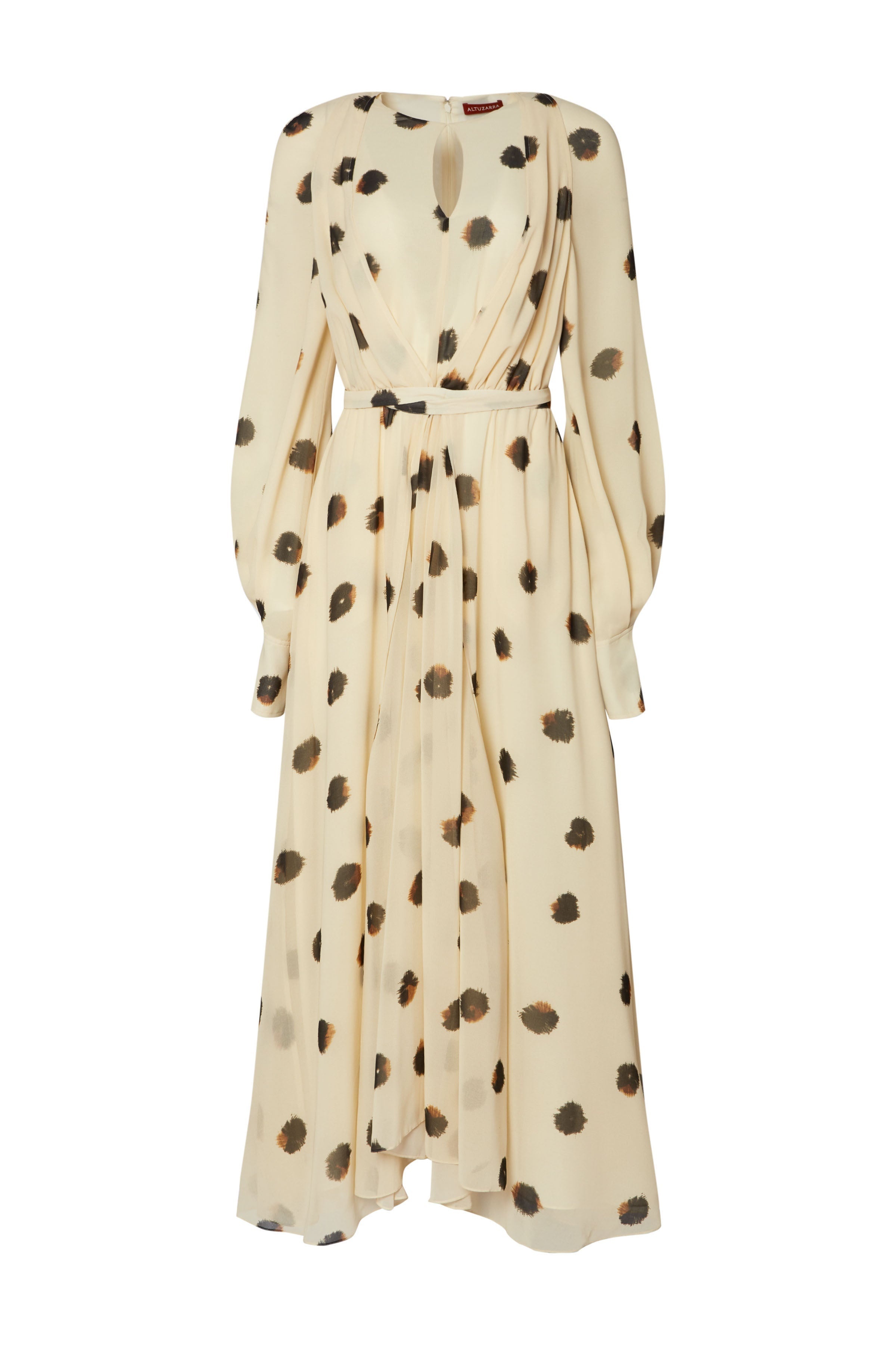 The 'Peirene' midi dress features a relaxed silhouette, tapered by a tie at the waist and finished with a functional keyhole opening at the neck. Details - Long sleeves - Tie at the waist - Midi length - 100% Silk - Made in Italy - Model is 5'10" and is wearing a size 36