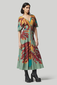 The ‘Pelopenese’ dress was first seen at Altuzarra’s FW23 show and was inspired by Rorschach tests. Created in Italy with real folded inkblots, it’s designed to be fitted around the bodice and flares from the waist to a floaty mid-length. Details - Midi length - V-neck - Short sleeves - Zip closure at back - Waist cinched - 97% Viscose 3% Elastane - Made in Italy - Model is 5'10" and is wearing a size 36