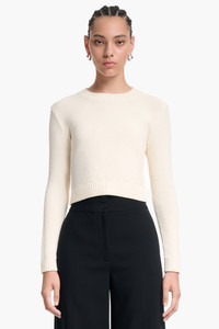 The ‘Pogo’ sweater is a wardrobe staple, knitted from a soft cotton-blend with a textured weave. The shrunken design is finished with a ribbed collar, cuffs and hem. Details Textured weave Ribbed collar, cuffs and hem 67% Cotton, 33% Polyamide
