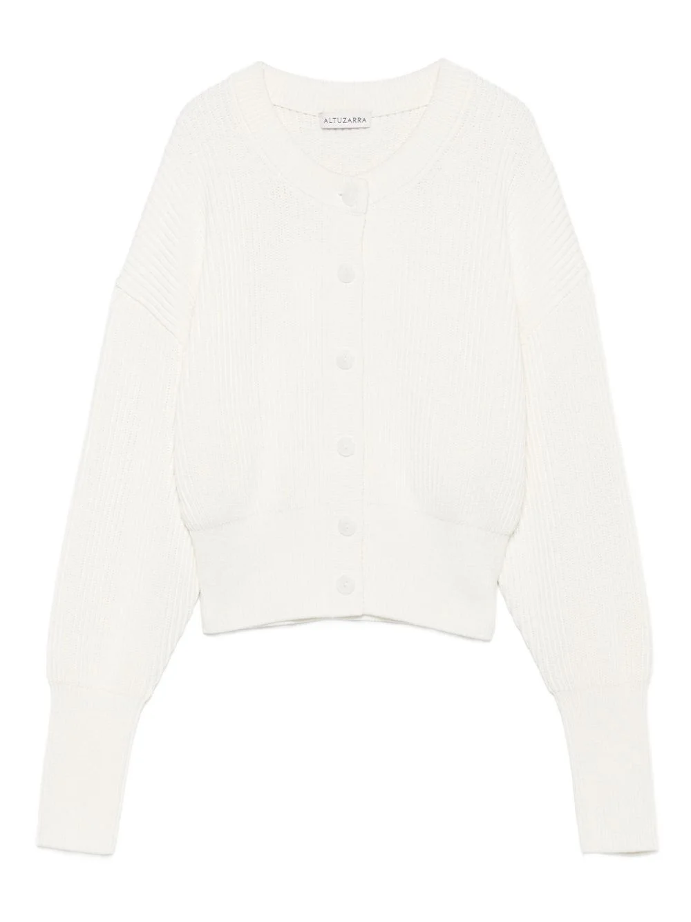 ribbed button cardigan Highlights - Natural white - Ribbed knit - Button front fastening - Long sleeves - Cotton - Round neck Imported Composition Cotton 100% SIZE & FIT Model measurements Height 5 ft 11 in(1.8 m) Bust/Chest 31.49 in(80 cm) Hips 36.61 in(93 cm) Waist 24.4 in(62 cm) Washing instructions Dry Clean Only