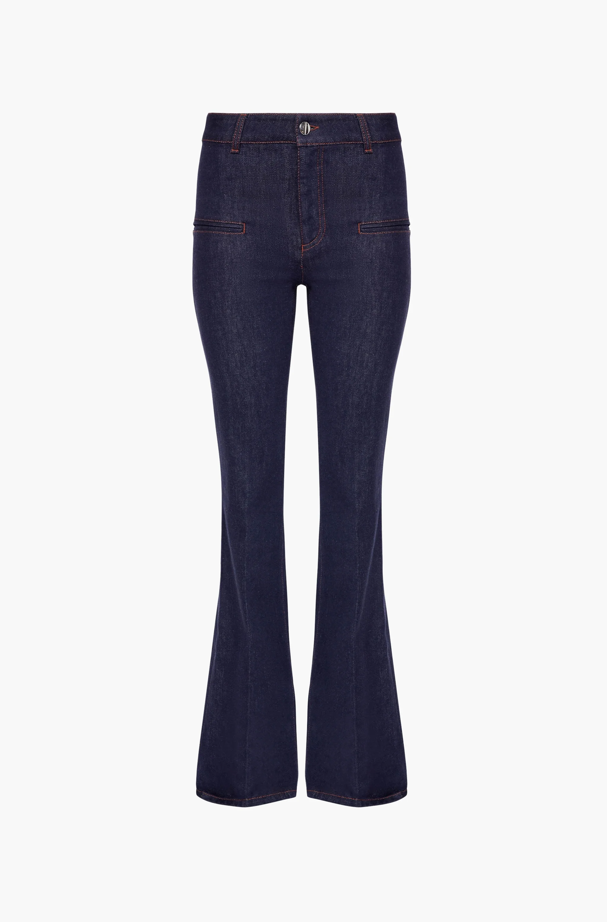 The signature Serge Denim Pant is part of the Core Collection. A sleek, floor-grazing style with a bootcut hem and a mid-rise waist. Cut from high-quality cotton with a subtle stretch, its minimal yet elegant, detailed simply with front jet pockets. Altuzarra offers complimentary hemming. Please reach out to customerservice@altuzarra.com. Details Mid-rise waist Zip and hook front closure Jet front pockets Flared leg 98% Cotton, 2% Elastane Made in Italy Model is 5'11" and is wearing a size 36