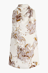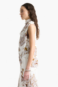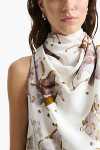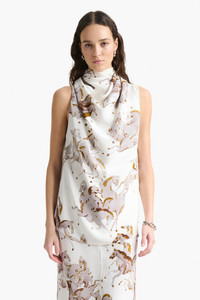 The Sleary top was featured on the FW25 runway. The pure silk silhouette is shaped to a high neck that elegantly drapes. Take cues from the show by wearing it with a maxi coat. Details 100% Silk. Made in Italy