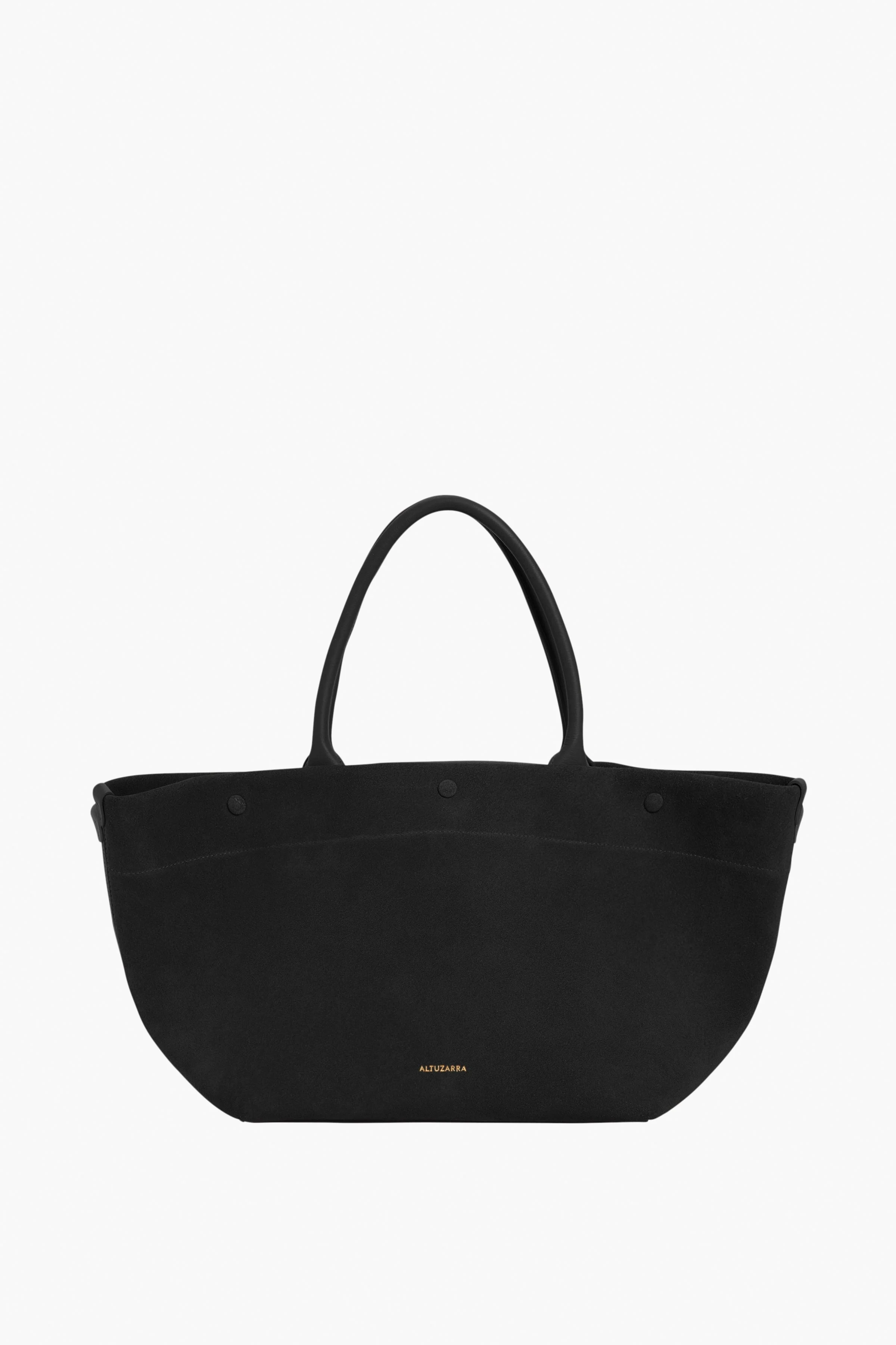 The small tote bag is the perfect weekday companion, the ideal size for a laptop. Featured on the FW24 runway, it's crafted in Italy from luxurious smooth leather with a three-snap closure, an interior zip pocket and a gold embossed logo. Details 100% Calf leather Made in Italy