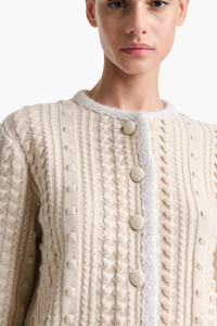 The Stef jacket is shaped from extrafine merino wool with a collection of knit patterns lending both a decorative and textural finish. Button it up over a dress or simple tank. Details 100% Rws Extrafine Merino Wool. Imported.