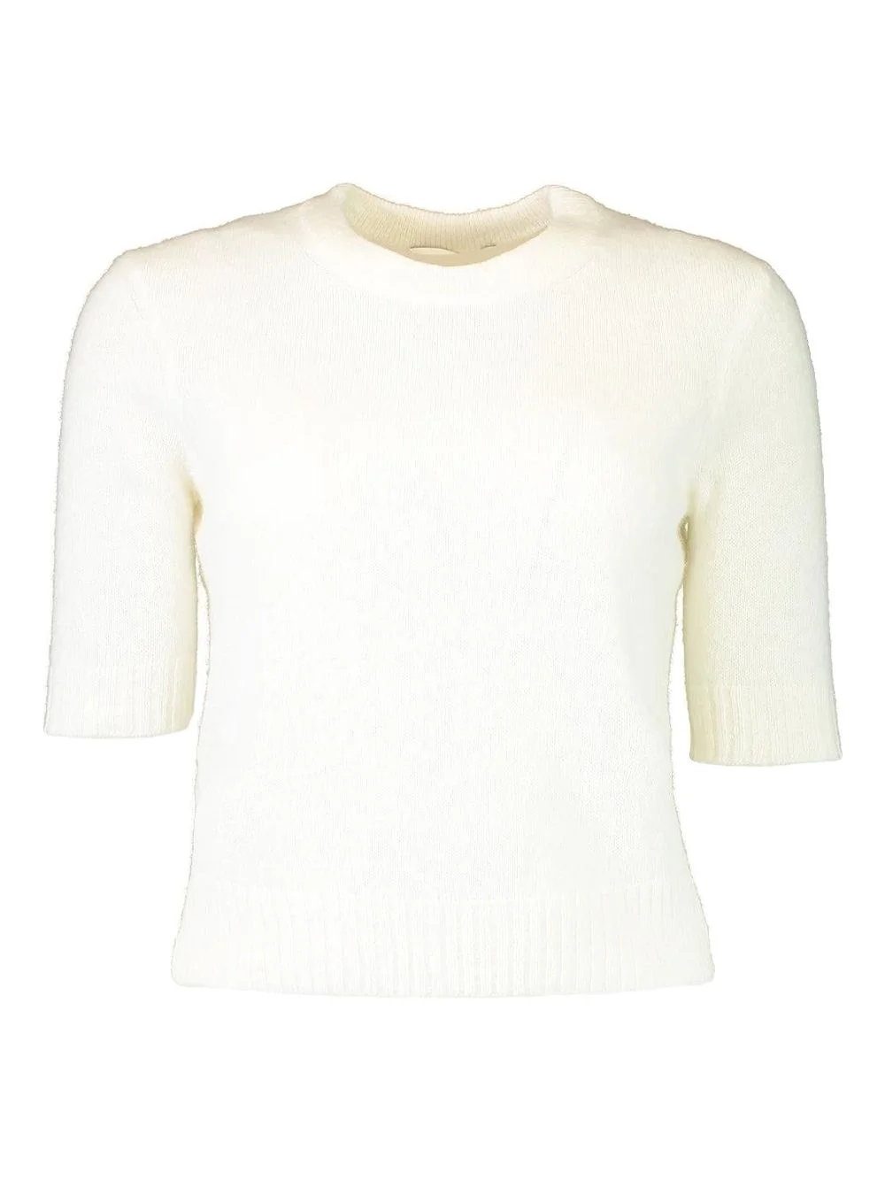 knitted T-shirt Highlights - Ivory - Crew neck - Short sleeves - Ribbed hem - Ribbed cuffs Made in Italy Composition Merino 50%, Polyamide 30%, Alpaca 20% Washing instructions Dry Clean Only