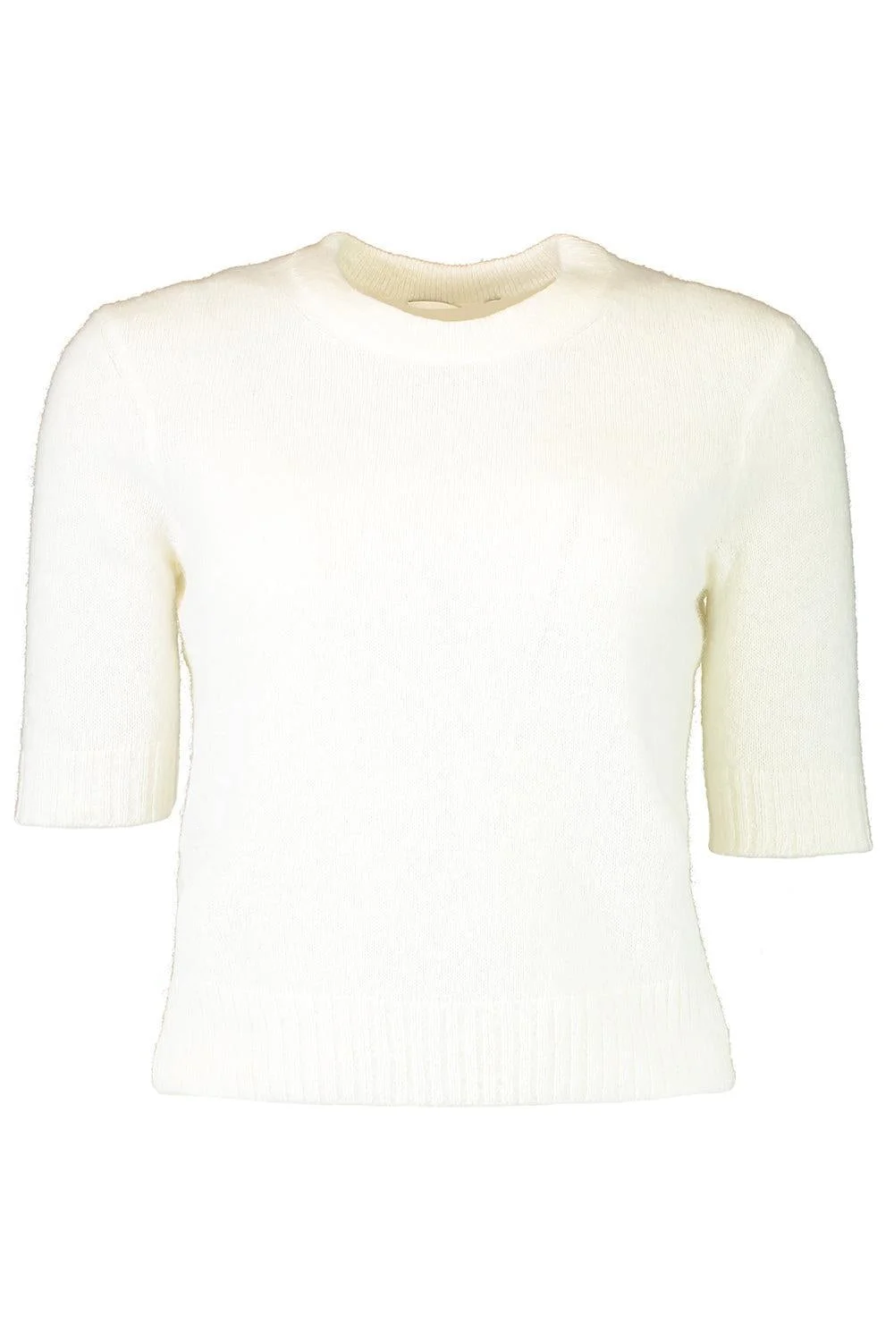 DETAILS AND INSIGHT Altuzarra ty sweater in ivory. 50% Extrafine Merino Wool, 20% Alpaca, 30% Polyamide Dry Clean Made In Italy Style S126-8834-000102