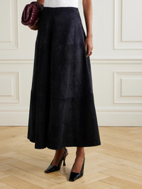 EXCLUSIVE AT NET-A-PORTER. Altuzarra's 'Varda' midi skirt is made from panels of velvety suede that are rich in color and smooth in texture. It's designed to sit at your natural waist and has an A-line shape. Wear it with knee boots or tonal sandals depending on the weather.