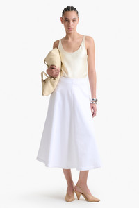 <!--br {mso-data-placement:same-cell;}--> Made from panels, the Varda Skirt has a smooth A-line midi shape that sits at the natural waistline and fastens at the back via a concealed zip. Details 100% Organic Cotton