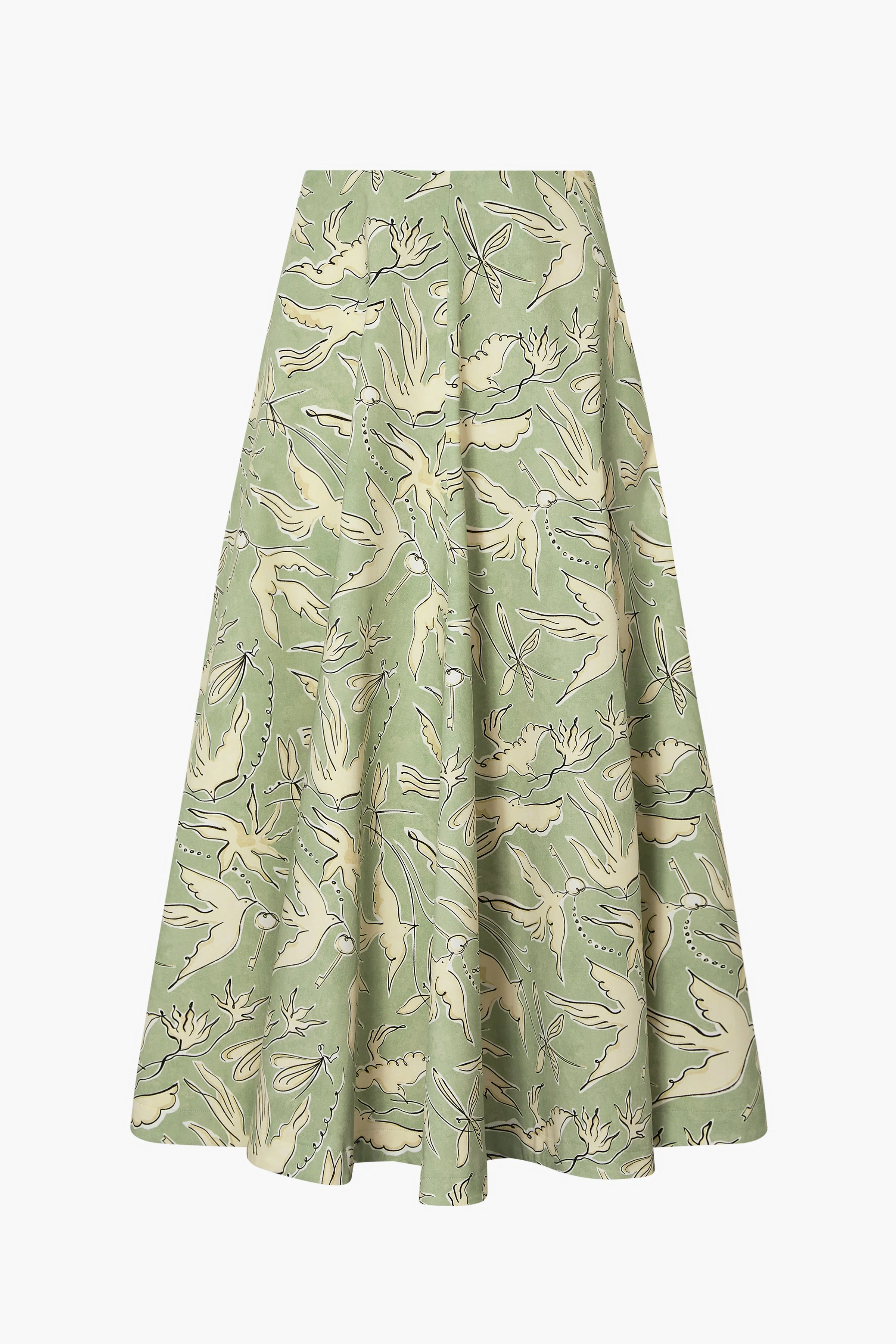 The Varda skirt is a signature Altuzarra style. The A-line midi shape sits at the natural waistline and fastens at the back via a concealed zip. Details 97% Cotton, 3% Spandex Made in Italy