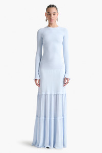The Venda dress has a whimsical feel. It's shaped to a maxi silhouette with long sleeves and ruffled cuffs. Designed with a layered skirt in varying finishes, style it with heels come nightfall. Details -96% Viscose, 4% Elite -Imported