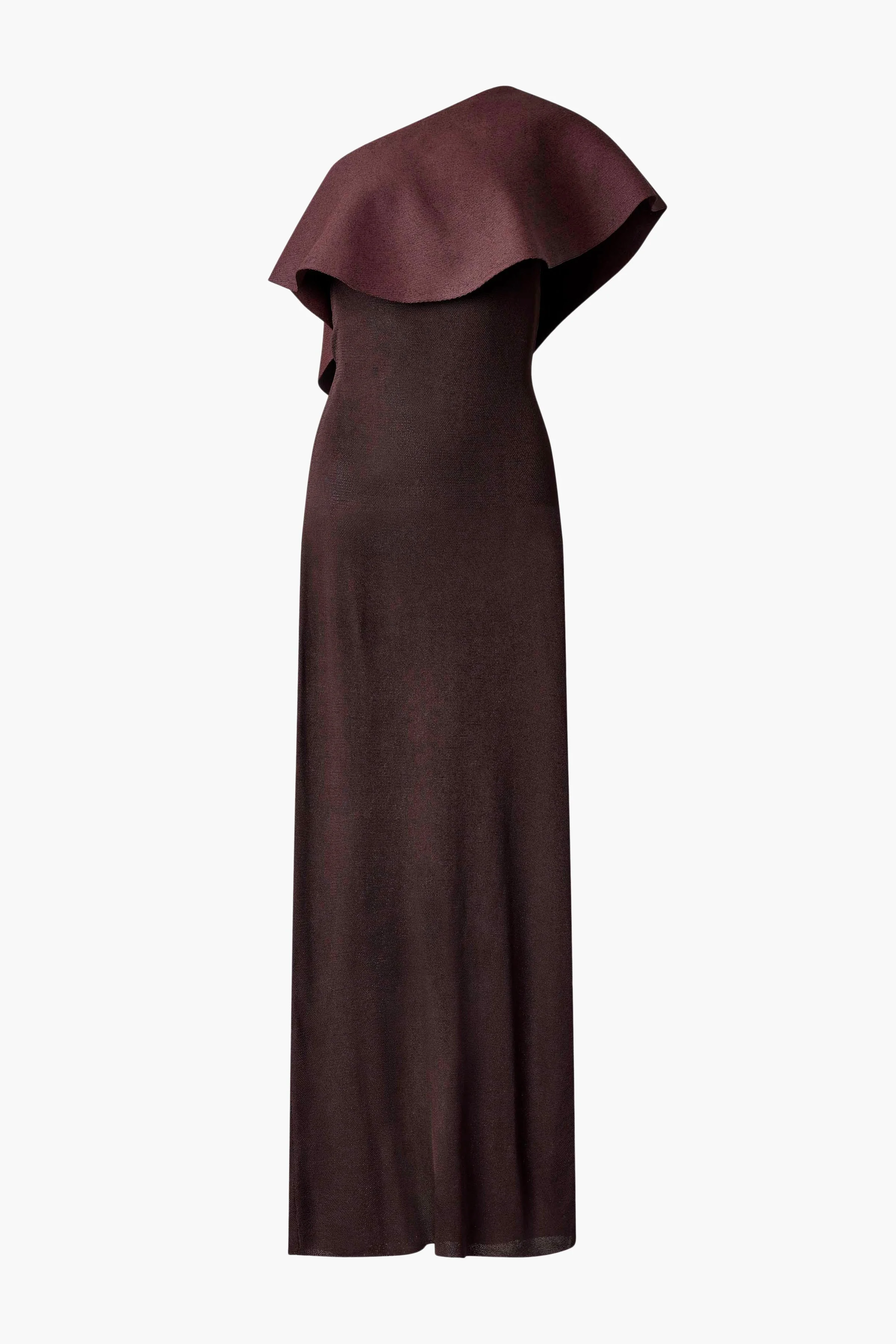 The Vivi dress is a striking evening option. Cut to an elegant one-shoulder neckline, topped with a dramatic satin ruffled detail, it's made using a special thermosetting technique. The slim column silhouette falls to the floor with a rear back slit for comfort Details '- 100% Rayon viscose