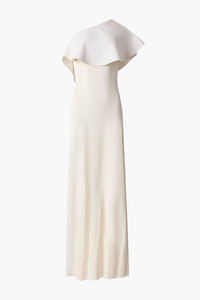 The Vivi dress is a striking evening option. Cut to an elegant one-shoulder neckline, topped with a dramatic satin ruffled detail, it's made using a special thermosetting technique. The slim column silhouette falls to the floor with a rear back slit for comfort Details '- 100% Rayon viscose