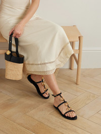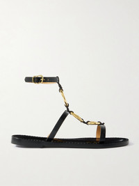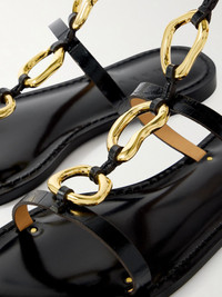 Amanu Studio's 'The Bazaruto' sandals catch the light with gold-tone links along the tops of your feet. They've been handmade using traditional techniques in Kibera, Kenya from croc-effect leather. Size & Fit - Fits true to size, take your normal size - Only available in full sizes, go up to the nearest whole size if you take a half size - US sizing Details & Care - Slight heel - Black croc-effect leather (Cow) - Buckle-fastening ankle strap
