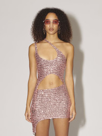 This one-shoulder mini dress is embellished with all-over sequins and features an asymmetric design. Product ID: BWDB049S23FAB0013400 SIZING MODEL SOPHIE WEARS SIZE XS HEIGHT: 5’ 10” (178 CM) BUST: 32” (82 CM) WAIST: 25” (64 CM) HIPS: 35” (89 CM) MATERIAL FABRIC 100% POLYESTER - LINING 69% POLYAMIDE 31% ELASTAN