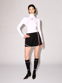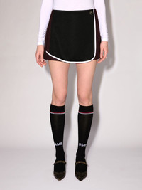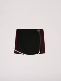 This track skirt features back pleats, 'AMBLEM' logo at the hip, and contrast sportive piping details. Product ID: BWCN001F24JER0011029 SIZING Model Tat wears size 40 Height: 5’ 11” (180 cm) Waist: 24" (63 cm) Hips: 34.5" (87 cm)