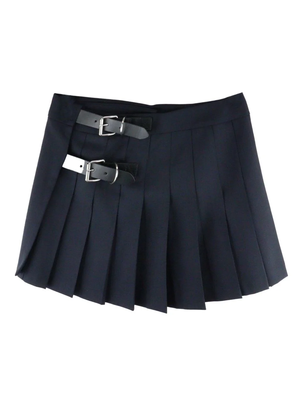belted mini skirt Highlights - Navy blue - Side buckle fastening - Pleat detailing - Thigh-length Made in Italy Composition Wool 99%, Polyurethane 1%