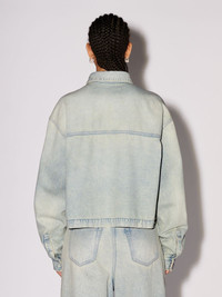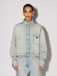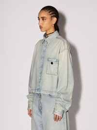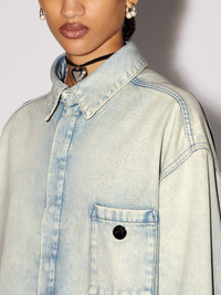 This denim shirt made from 100% cotton features a front button closure and short sleeves with the ‘AMBLEM' logo on the pocket. Product ID: BWYD002S24DEN0024200 SIZING Model Sophie wears size S Height: 5’ 10” (178 cm) Bust: 32.5” (82 cm) Waist: 24" (64 cm)