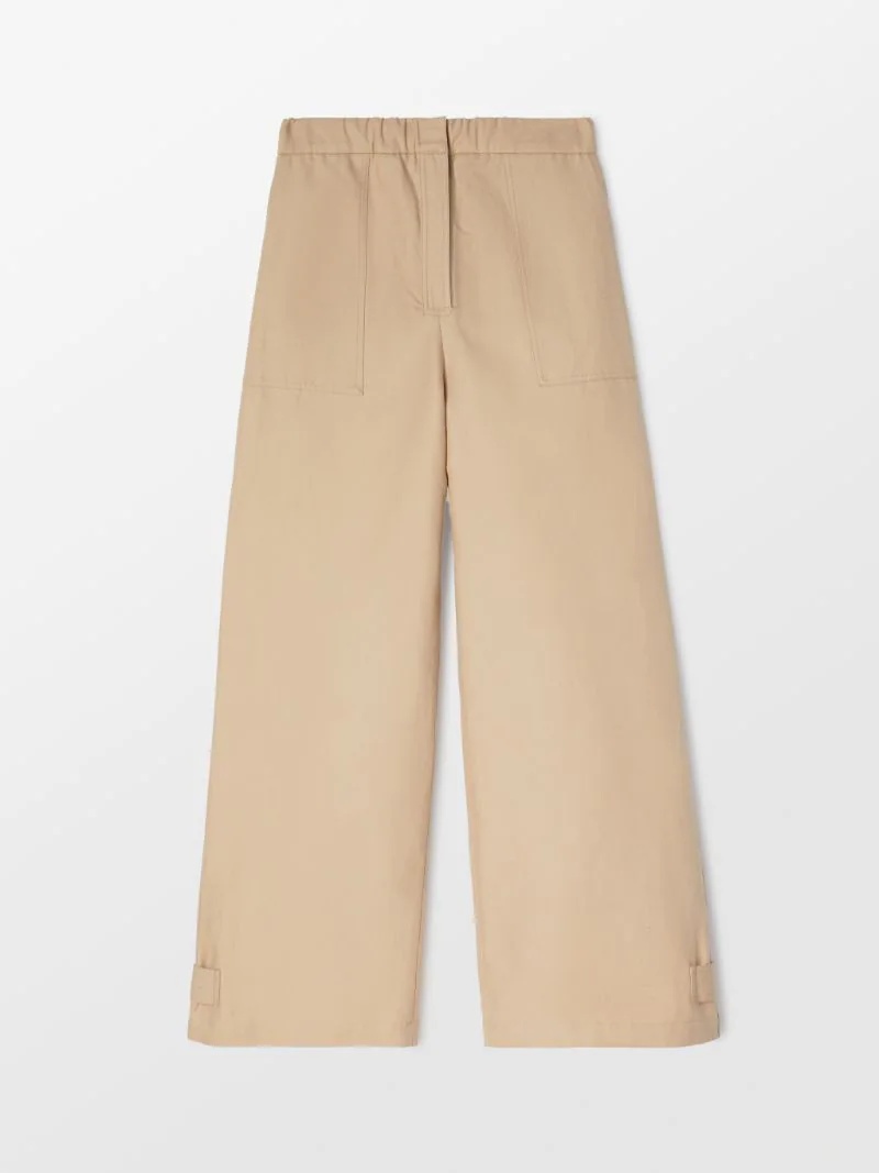 Wide leg cargo pants made with cotton and linen. Elasticized waist. Product ID: BWCF001S22FAB0016100 SIZING MODEL SALLY WEARS SIZE S HEIGHT: 5’ 11" (180 CM) BUST: 32” (81 CM) WAIST: 24” (63 CM) HIPS: 35” (90 CM) MATERIAL FABRIC1:COTTON87% LINEN13%