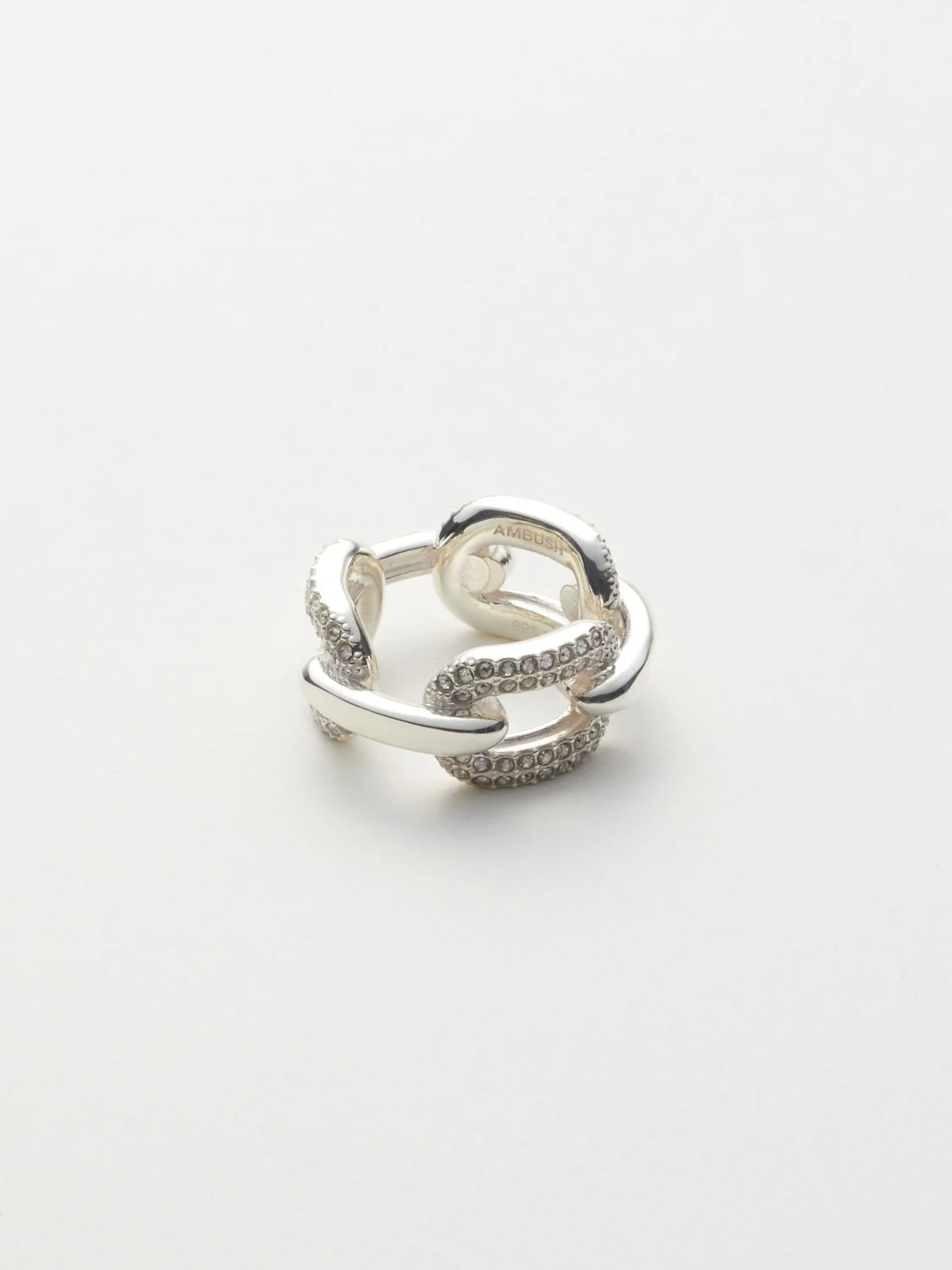 AMBUSH® signature chain ring with swarovski. Made from silver 925. MATERIAL Silver 925, Swarovski