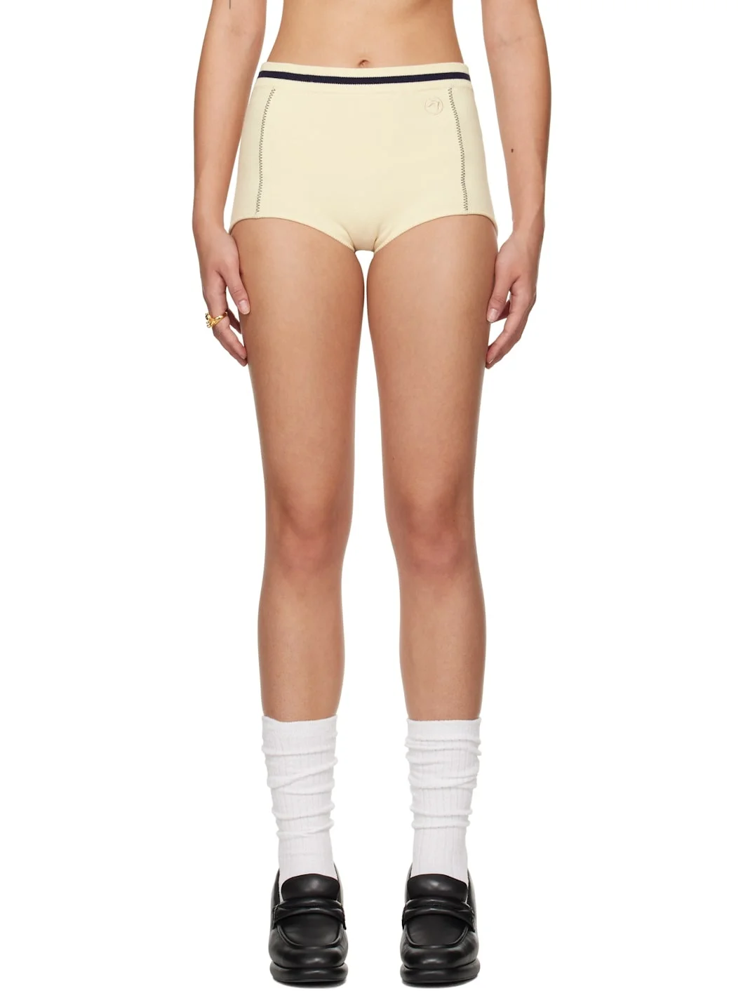 Knit stretch cotton- and nylon-blend shorts. · Striped rib-knit waistband · Logo embroidered at front · Contrast overlock stitching in navy at front and back · Rib-knit cuffs Supplier color: Tofu 72% cotton, 26% polyamide, 2% elastane. Made in Italy 242820F088001