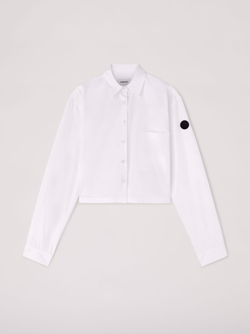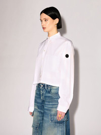 This cropped button-up shirt features a chest pocket. Product ID: BWGE004F24FAB0010100 SIZING Model Tat wears size S Height: 5’ 11” (180 cm) Bust: 31.5” (80 cm) Waist: 24" (63 cm)