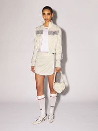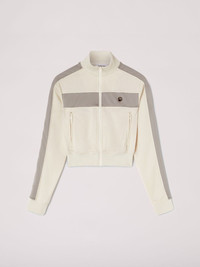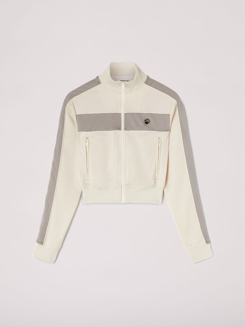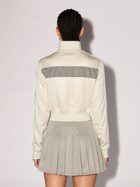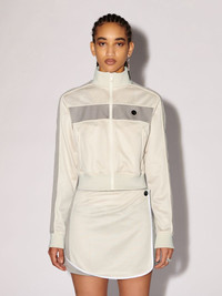 The cropped track jacket features the 'AMBLEM' logo at the front with a zip closure. Product ID: BWBD001S24JER0013109 SIZING Model Sophie wears size S Height: 5’ 10” (178 cm) Bust: 32.5” (82 cm) Waist: 24" (64 cm)