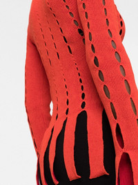 cut-out knitted top Renowned for refreshed everyday essentials, Ambush presents this knitted top for AW22. Crafted in a bright orange hue, the cut-out design adds an edgy look to the garment. Made in Italy Composition Cotton 63%, Viscose 27%, Polyamide 10% SIZE & FIT Model measurements Height 5 ft 10 in(1.77 m) Bust/Chest 32.28 in(82 cm) Hips 35.03 in(89 cm) Waist 25.19 in(64 cm) FittingInformation This piece fits true to size. We recommend you get your regular size Cut for a slim fit Made with a mid-weight fabric Washing instructions Hand Wash
