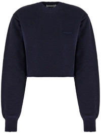 logo-embroidered cotton sweatshirt Highlights - Midnight blue - Cotton - Distressed effect - Embroidered logo at the chest - Ribbed trim - Crew neck - Long sleeves - Cropped Imported Composition Cotton 100%
