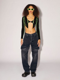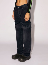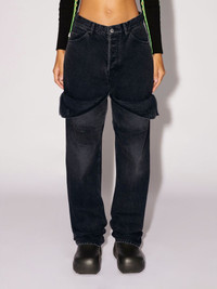 Made from a 100% cotton, these mid-rise denim pants feature detailing on the legs, two front and two back pockets, a button closure, a zip fly and belt loops. Product ID: BWYB008S23DEN0011200 SIZING MODEL SOPHIE WEARS SIZE 26 HEIGHT: 5’ 83” (178 CM) BUST: 32” (82 CM) WAIST: 25” (64 CM) HIPS: 35” (89 CM) MATERIAL FABRIC 100% COTTON