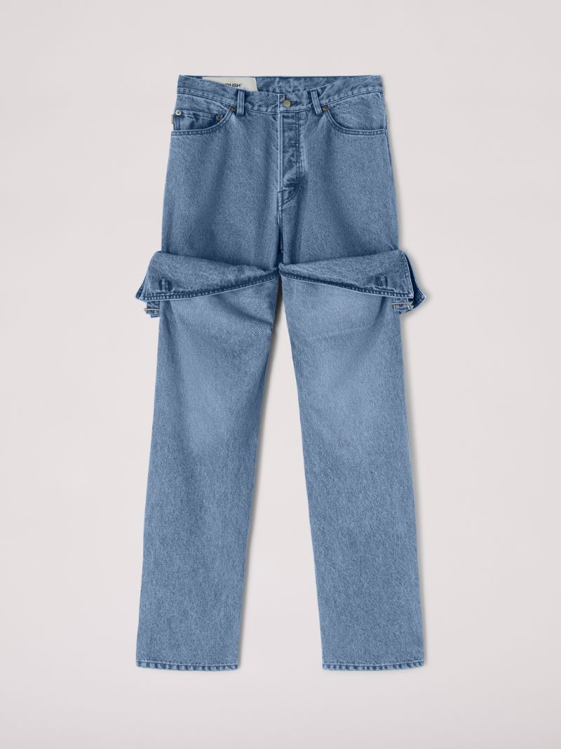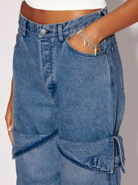 Made from a 100% cotton, these mid-rise denim pants feature detailing on the legs, two front and two back pockets, a button closure, a zip fly and belt loops. Product ID: BWYB008S23DEN0014900 SIZING MODEL HARLEY WEARS SIZE 26 HEIGHT: 5’ 11” (180 CM) BUST: 32” (82 CM) WAIST: 24” (61 CM) HIPS: 35” (89 CM) MATERIAL FABRIC 100% COTTON