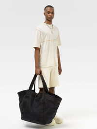 Maxi size canvas tote bag featuring embossed AMBUSH® logo. Includes removable leather pouch. Product ID: BMNA007F21FAB0011010 SIZING Dimension: 90x52x20 cm Handle drop: 30 cm MATERIAL FABRIC: 58% COTTON 42% POLYURETHANE