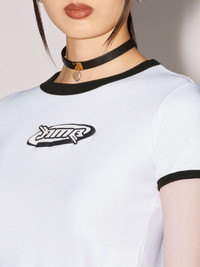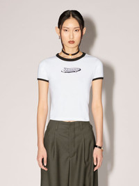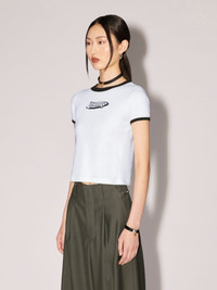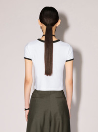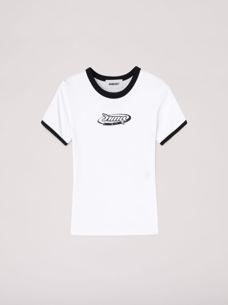 Made from 100% cotton, the short sleeved white t-shirt features black detailing on the sleeves and collar, as well as the seasonal AMB graphic logo on the front. Product ID: BWAA040S23JER0010110 SIZING MODEL GUK WEARS SIZE XS HEIGHT: 5’ 10” (178 CM) BUST: 31” (79 CM) WAIST: 21” (55 CM) HIPS: 34” (87 CM) MATERIAL FABRIC 100% COTTON