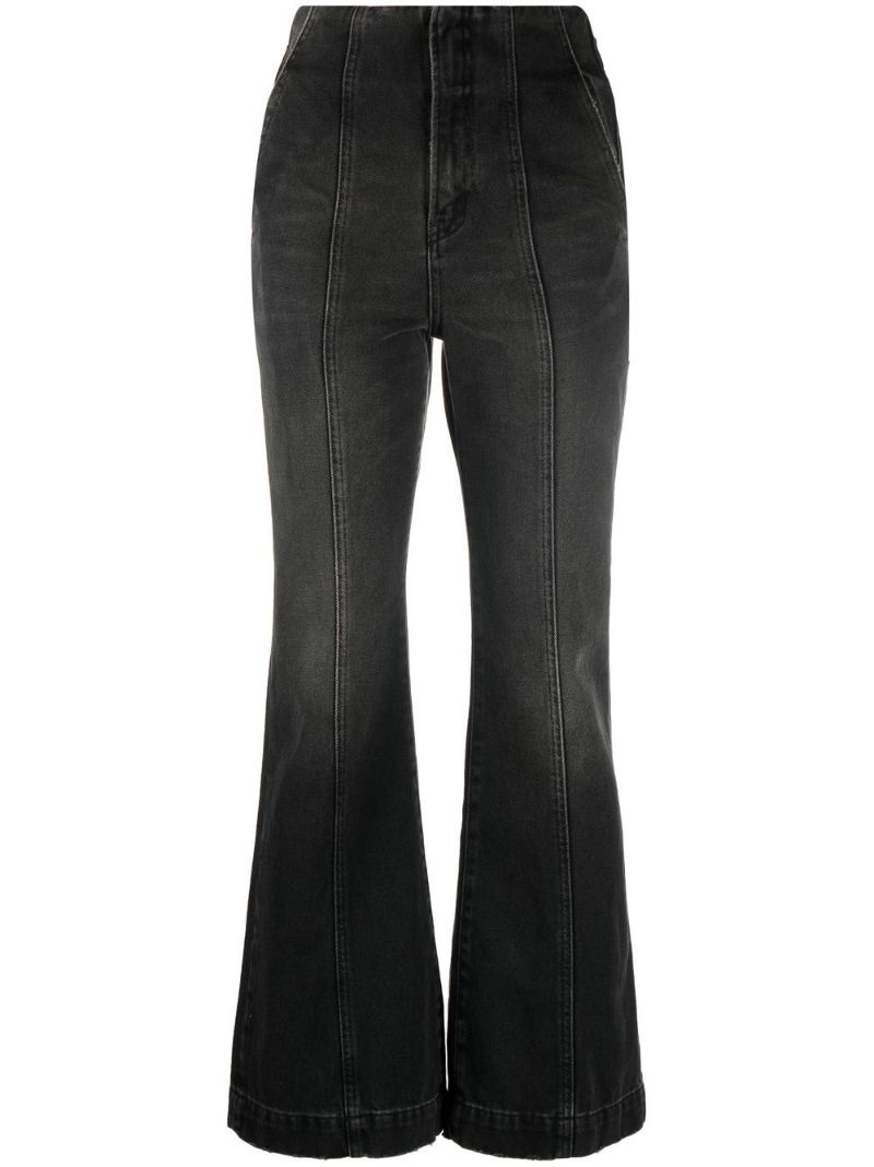 flared cropped trousers These high-waisted jeans from Ambush feature a flared cut and a cropped silhouette, offering an intriguing design that is subtly decorated with seam detailing and a logo patch to the rear for a minimalist finish. Made in Italy Composition Outer: Cotton 100% Lining: Polyester 65%, Cotton 35% SIZE & FIT Model measurements Height 5 ft 10 in(1.78 m) Bust/Chest 33.9 in(86 cm) Hips 36.6 in(93 cm) Waist 26.8 in(68 cm) FittingInformation This piece fits true to size. We recommend you get your regular size Designed to be fitted at the waist and through the thigh, loose from the knee Made with a mid-weight non-stretch fabric