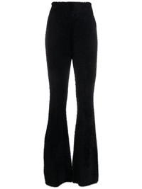 flared-leg high-waisted trousers jet black stretch-design flared fleece texture high waist Made in Italy Composition Polyamide 99%, Spandex/Elastane 1% SIZE & FIT Model measurements Height 5 ft 10 in(1.79 m) Bust/Chest 31.1 in(79 cm) Hips 35.03 in(89 cm) Waist 24.01 in(61 cm) FittingInformation This piece fits true to size. We recommend you get your regular size Designed to be fitted at the waist and through the thigh, loose from the knee Made with a mid-weight stretch fabric Washing instructions Hand Wash