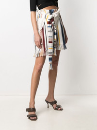 frayed-hem striped shorts Sunny days require joyful looks. With a fringed hem and a vibrant striped print, these shorts from AMBUSH tick all the right boxes. Enjoy. Highlights - White/multicolour - Cotton-linen blend - Vertical stripe pattern - Fringed edge - High waist - Tied waist - Two side inset pockets Made in Italy Composition Outer: Linen/Flax 55%, Cotton 45% Lining: Cotton 100% SIZE & FIT Model measurements Height 5 ft 9 in(1.74 m) Bust/Chest 32.28 in(82 cm) Hips 35.82 in(91 cm) Waist 24.01 in(61 cm) FittingInformation This piece fits true to size. We recommend you get your regular size Designed to be fitted at the waist and hips, loose over the leg Made with a mid-weight fabric Washing instructions Hand Wash