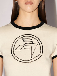 The baby tee made from 100% organic cotton features a hand drawn ‘AMBLEM' logo at the front. Product ID: BWAA048S24JER0013110 SIZING Model Martina wears size S Height: 5’ 11” (180 cm) Bust: 34” (87 cm) Waist: 24" (63 cm)
