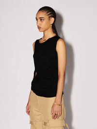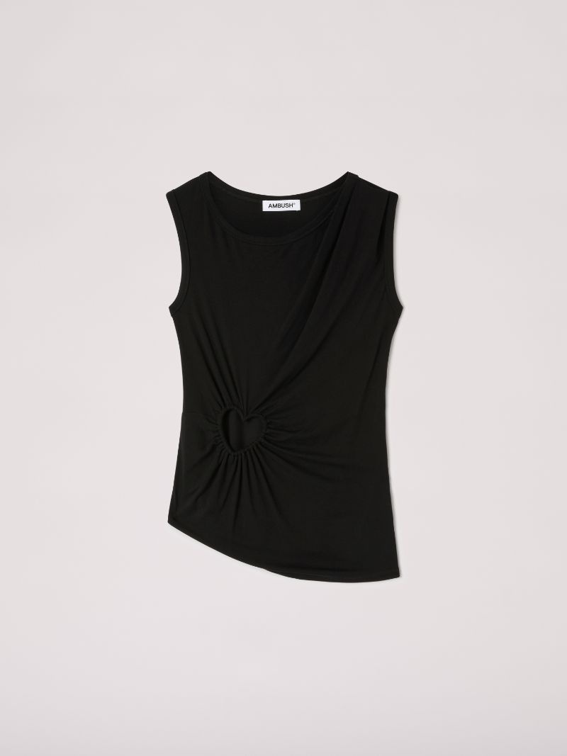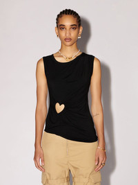 This sleeveless top features a crew neckline and a small heart cut-out detail. Product ID: BWAG003S24JER0011000 SIZING Model Sophie wears size S Height: 5’ 10” (178 cm) Bust: 32.5” (82 cm) Waist: 24" (64 cm)