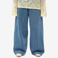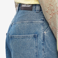 Capturing a distinct Tokyo aesthetic in each of its collections, AMBUSH expanded its production into clothing in 2015. Inspired by all things from 1950s Americana to Europe’s rebellious post-war youth subcultures, the label releases thematically linked women’s collections that transform everyday shapes into dramatic adornment. Perfect for pairing with a signature oversized tee or multi cord hoodie, these jeans are cut from cotton denim. With a relaxed aesthetic, they are cut to a baggy fit, finished with a leather brand patch on the reverse. - 100% Cotton - Belt Loops - 5 Pocket Detailing - Zip & Button Fly