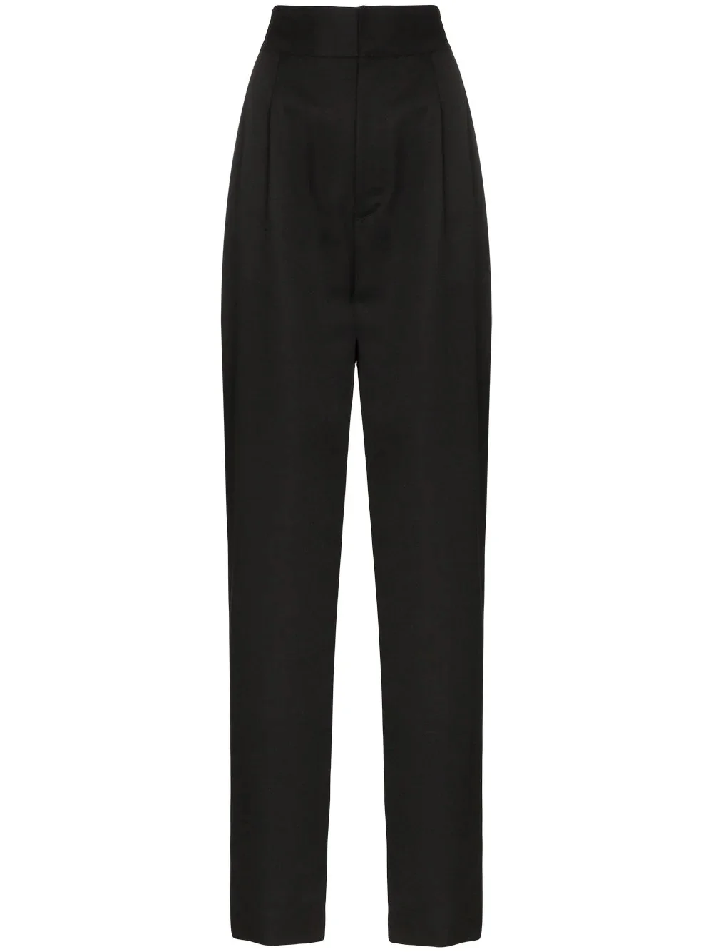 high-waist straight leg trousers Thinking about tailoring your wardrobe in a smarter direction? Stride out to work in these black wool high-waist straight leg trousers from AMBUSH which bring an elevated look to your outfit without being uncomfortable thanks to an elasticated waistband. It suits you perfectly. Featuring a front hook and eye fastening, side slit pockets, a straight leg and a regular length. Imported Composition Wool 100% SIZE & FIT Model measurements Height 5 ft 10 in(1.78 m) Bust/Chest 33.85 in(86 cm) Hips 34.25 in(87 cm) Waist 24.01 in(61 cm) Washing instructions Hand Wash
