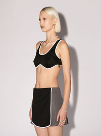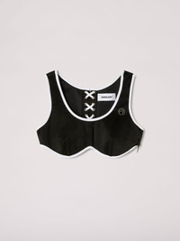 This bra top features the 'AMBLEM' logo at the front and a lace-up closure at the back. Product ID: BWAD004S24JER0011000 SIZING Model Patricia wears size S Height: 5’ 9” (177 cm) Bust: 32” (81 cm) Waist: 23" (59 cm)