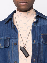 logo lighter case pendant necklace Ambush's signature lighter case pendant hangs from this delicate silver-tone chain in a matte black design. Crafted in Japan, this statement accessory is part of the brand's SS22 collection and is finished with a raised logo motif. Imported SIZE & FIT Model measurements Height 6 ft 2 in(1.88 m) Bust/Chest 36.61 in(93 cm) Hips 35.82 in(91 cm) Waist 27.95 in(71 cm)