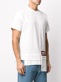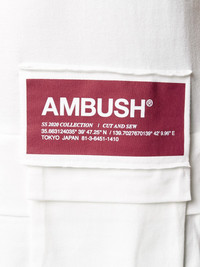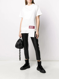logo patch T-shirt Take a breath of fresh air with this white cotton logo patch T-shirt from AMBUSH. It's more than your average white Tee as its playful add-ons make it a unique daytime delight. It features a high low hem, a stretch fit, a round neck and short sleeves. Imported Composition Cotton 100% SIZE & FIT Model measurements Height 5 ft 10 in(1.78 m) Bust/Chest 33.07 in(84 cm) Hips 35.82 in(91 cm) Waist 26.96 in(68.5 cm) FittingInformation This piece is unisex. Please take care when selecting your size Cut for a relaxed fit for both men and women Made with a mid-weight fabric Washing instructions Machine Wash