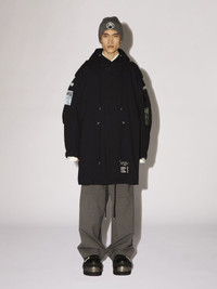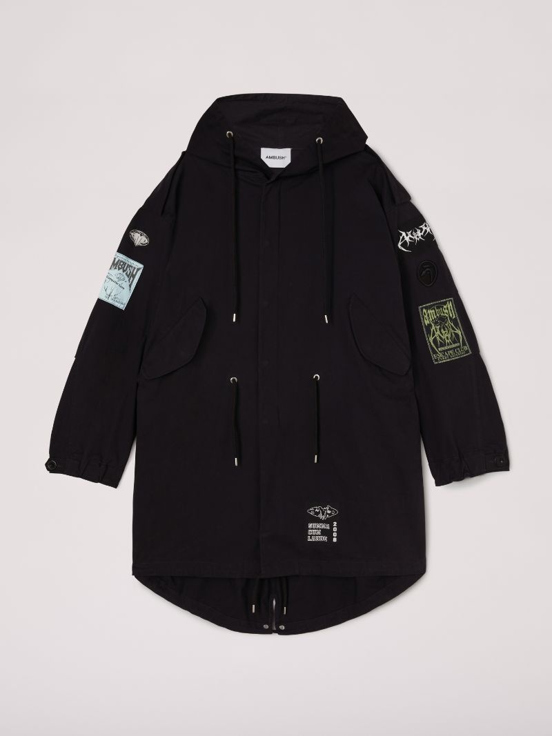 This roomy long parka features front zip closure, a hood with adjustable strings, as well as AMBUSH® logo patches on the sleeves. Product ID: BMEC004F23FAB0011000 SIZING MODEL MINYUNG WEARS SIZE M HEIGHT: 6’ 06” (185 CM) BUST: 33” (85 CM) WAIST: 26” (67 CM) HIPS: 34” (86 CM) MATERIAL FABRIC 3% ELASTAN 97% COTTON - LINING 100% COTTON