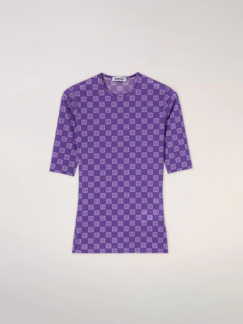 Slim fit short sleeves t-shirt with AMBUSH original monogram pattern. Product ID: BWAA024S22JER0013536 MATERIAL FABRIC: NYLON61% POLYURETHANE39%