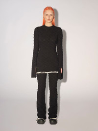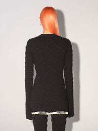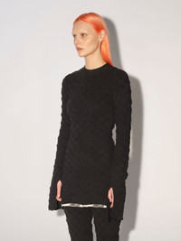 Long-sleeved knit turtleneck top featuring an embroidered all-over monogram motif and AMBUSH® logo detail at the hem. Product ID: BWHF012F22KNI0011010 SIZING MODEL MARTINA WEARS SIZE M HEIGHT: 5’ 8” (178 CM) BUST: 33” (84 CM) WAIST: 24” (61 CM) HIPS: 35” (90 CM) MATERIAL FABRIC 91% COTTON 8% POLYAMIDE 1% ELASTAN