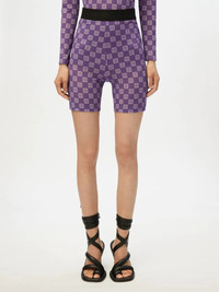 Short cyclist with AMBUSH original monogram pattern. Product ID: BWCB007S22JER0013536 SIZING MODEL TAN WEARS SIZE S HEIGHT: 5’ 9” (177 CM) BUST: 30” (77 CM) WAIST: 23” (59 CM) HIPS: 34” (87 CM) MATERIAL FABRIC: NYLON61% POLYURETHANE39%